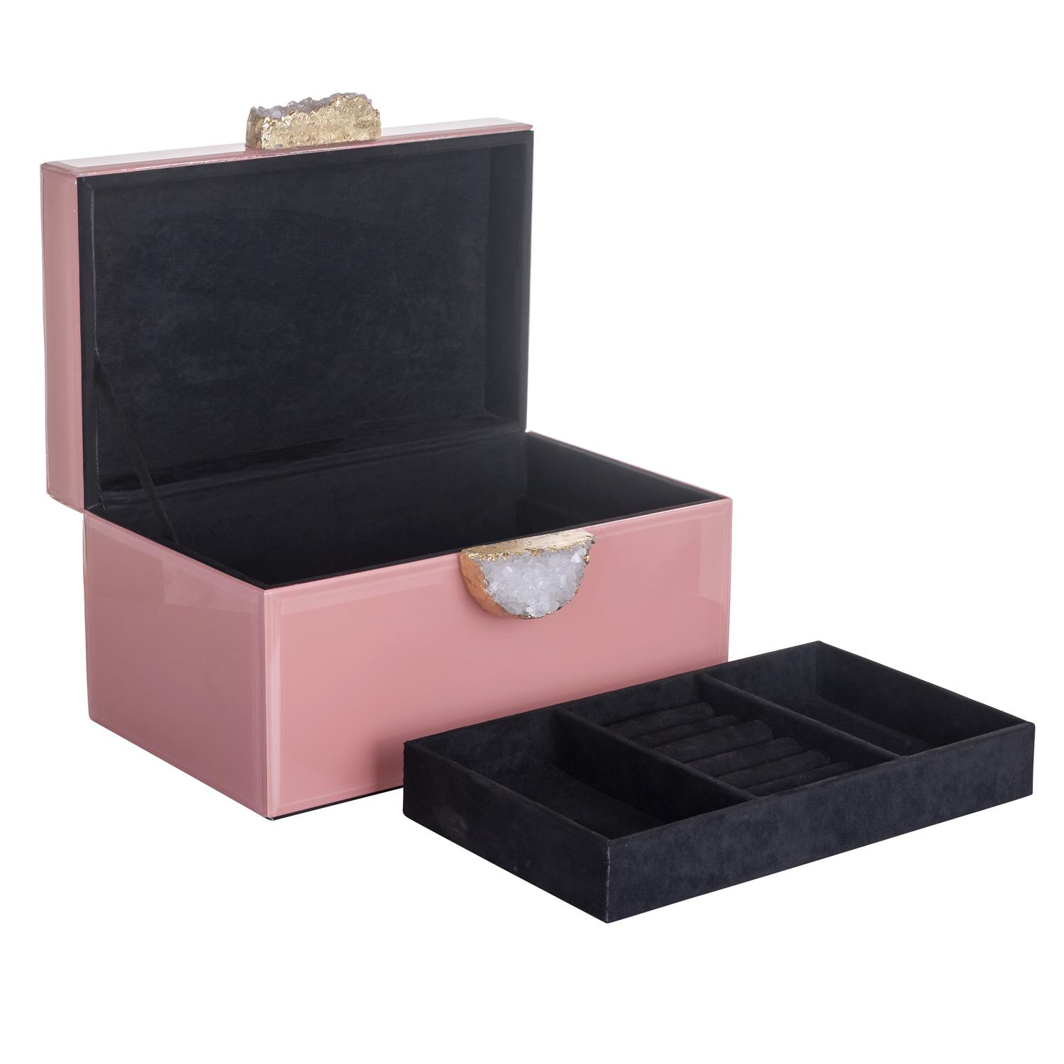 Magnifique coffre à bijoux en verre, intérieur matelassée en velours noir.Son ouverture ornée d’authentique pierre semi-précieuse, et sa finition doré apporteront toute son élégance à votre espace beauté.Existe en blanc et et noir marbré.