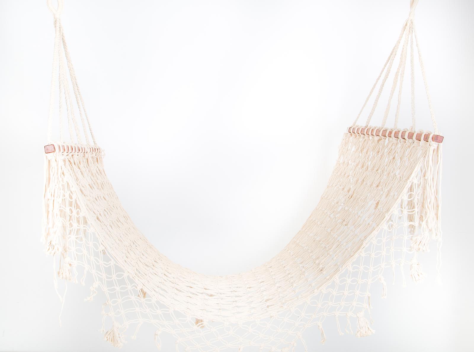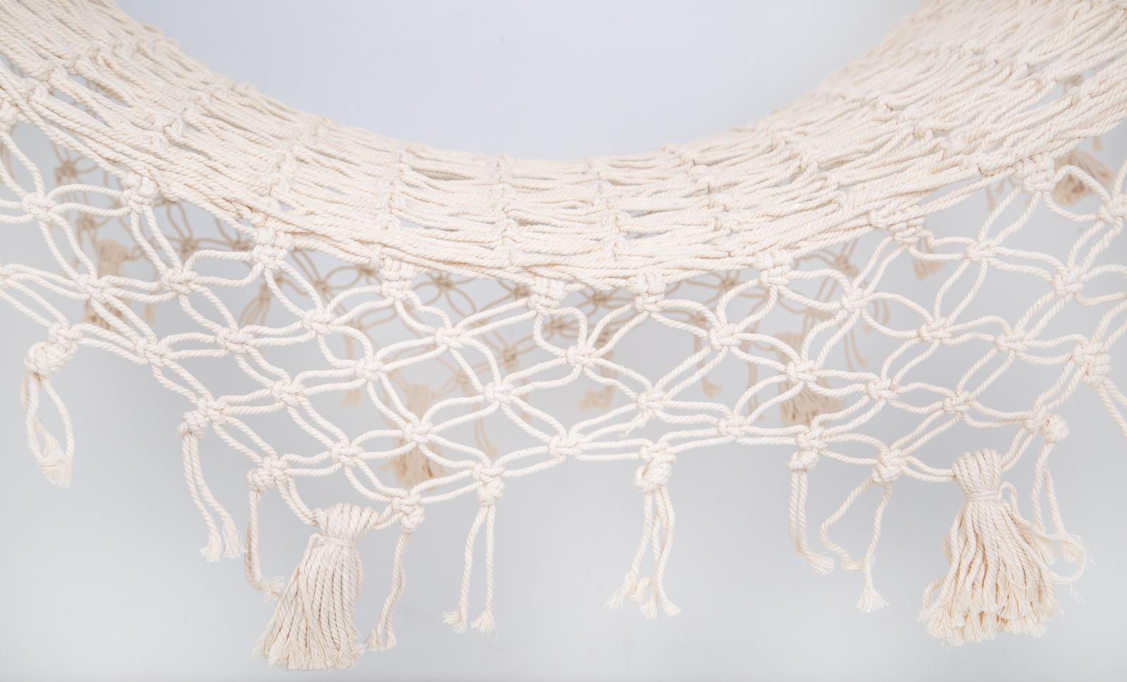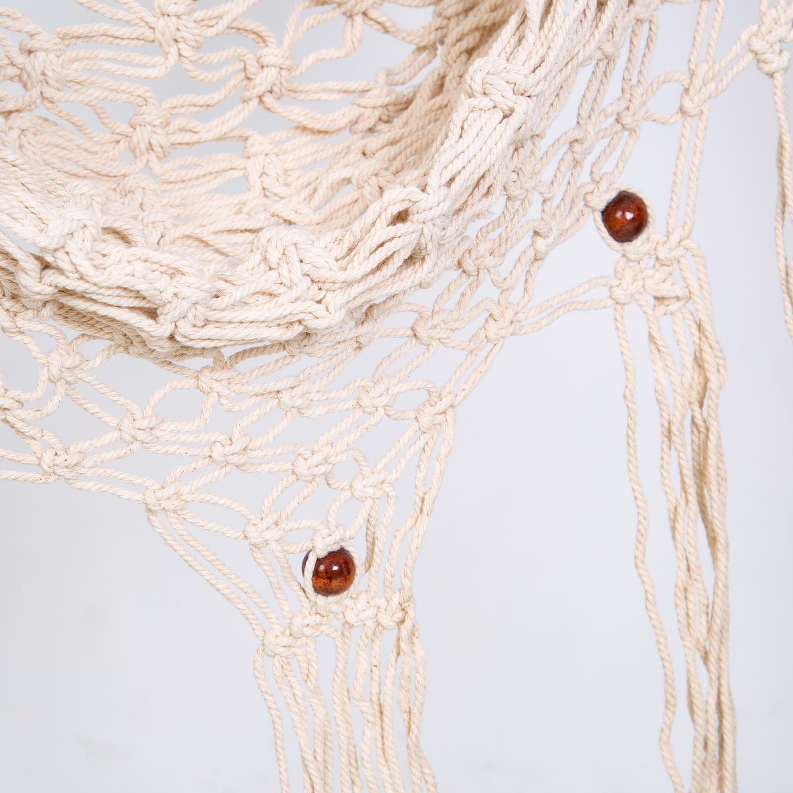 Chaise hamac en macramé beige à suspendre en macramé Blanc et bois naturel