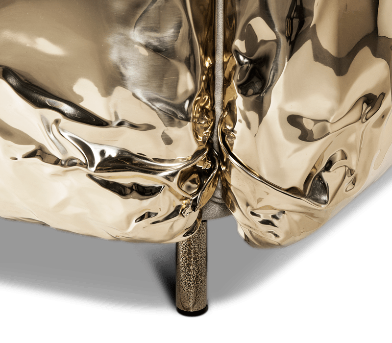 Imperfectio Sofa est l’expression d’une esthétique imparfaite, l’appel de ce qui est un art authentique et plus vrai dans la vie. Imperfectio Sofa loue le travail artisanal comme la forme d’art ultime qui est intentionnellement imparfaite. Par son existence et ses formes uniques, Imperfectio Sofa détermine sa propre histoire. Les irrégularités et les défauts sur le laiton martelé manuel exposent la beauté de l’imperfection. Certaines parties sont à peu près asymétriques à la surface, mais confortables et lisses d’une manière particulière pour exciter le désir de compléter votre salon.