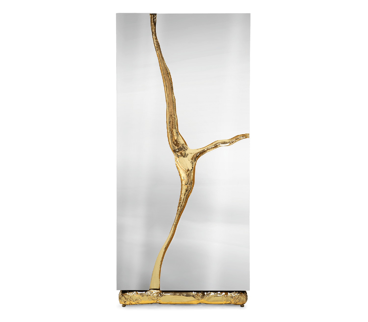 Acier inoxydable, finition or (développé par Boca do Lobo Studio) Racine de peuplier et laiton poli. DIMENSIONS
