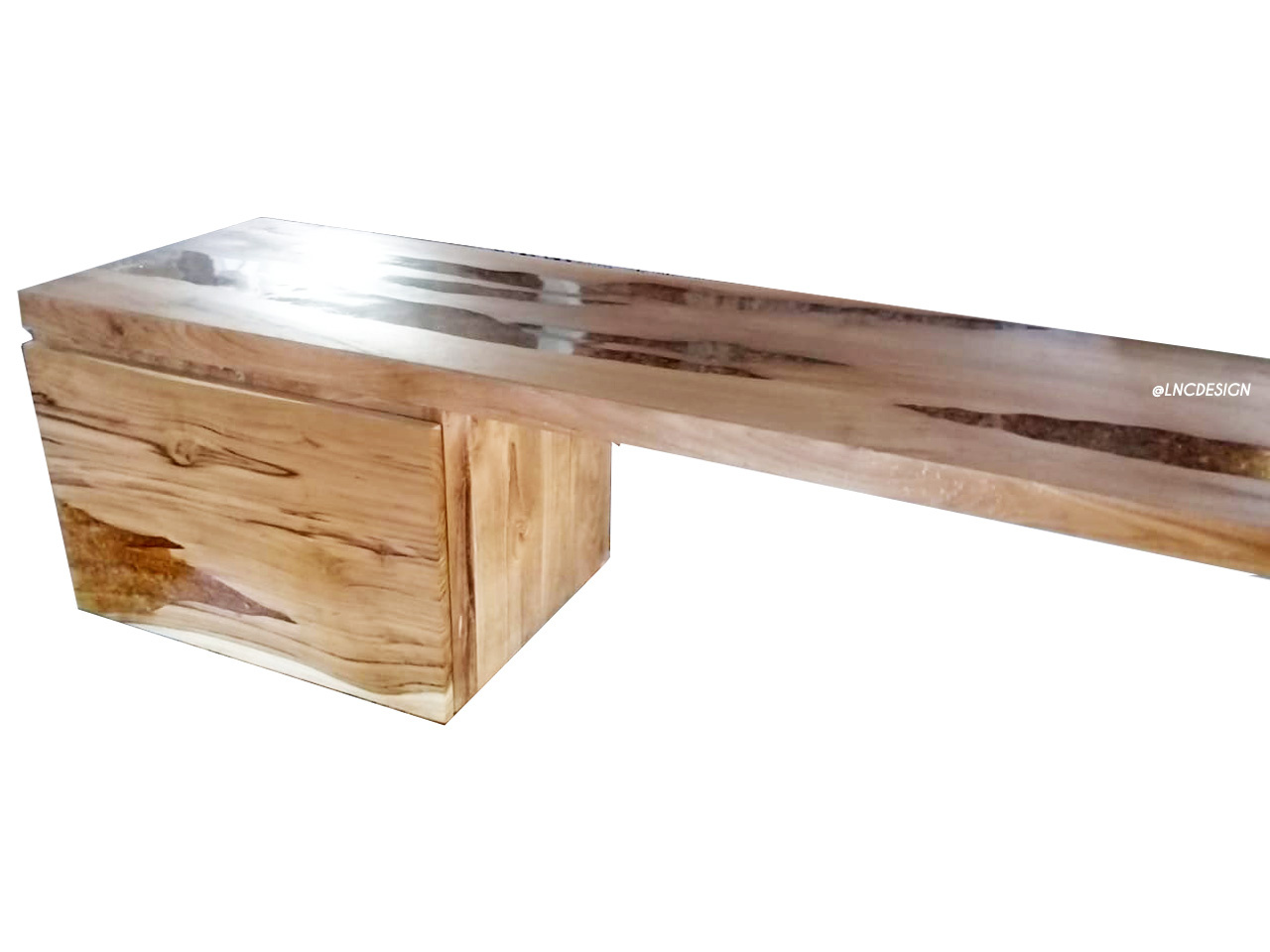 Meuble Mixy-Quartz en bois et résine transparente et cristaux or 100 x 40 x 20 cm.