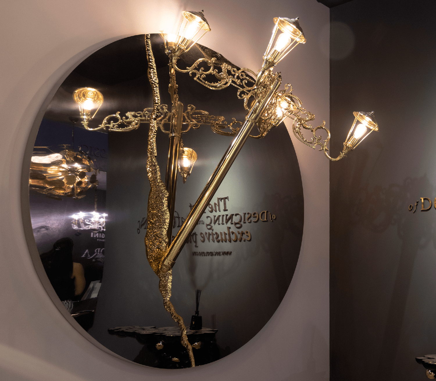 Le mystique des boulevards de la fin du XIXe siècle est ramené à la maison par le chef-d’uvre Lumière grand miroir mural. Une confluence de réverbères victoriens et de forme tectonique architecturale, la Lumière illustre les dualités contemporaines de l’art et de la fonctionnalité.