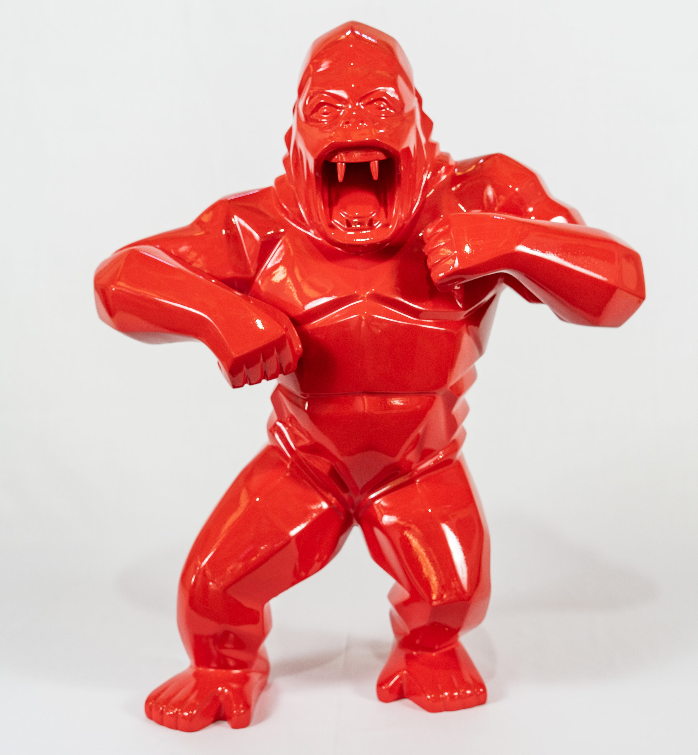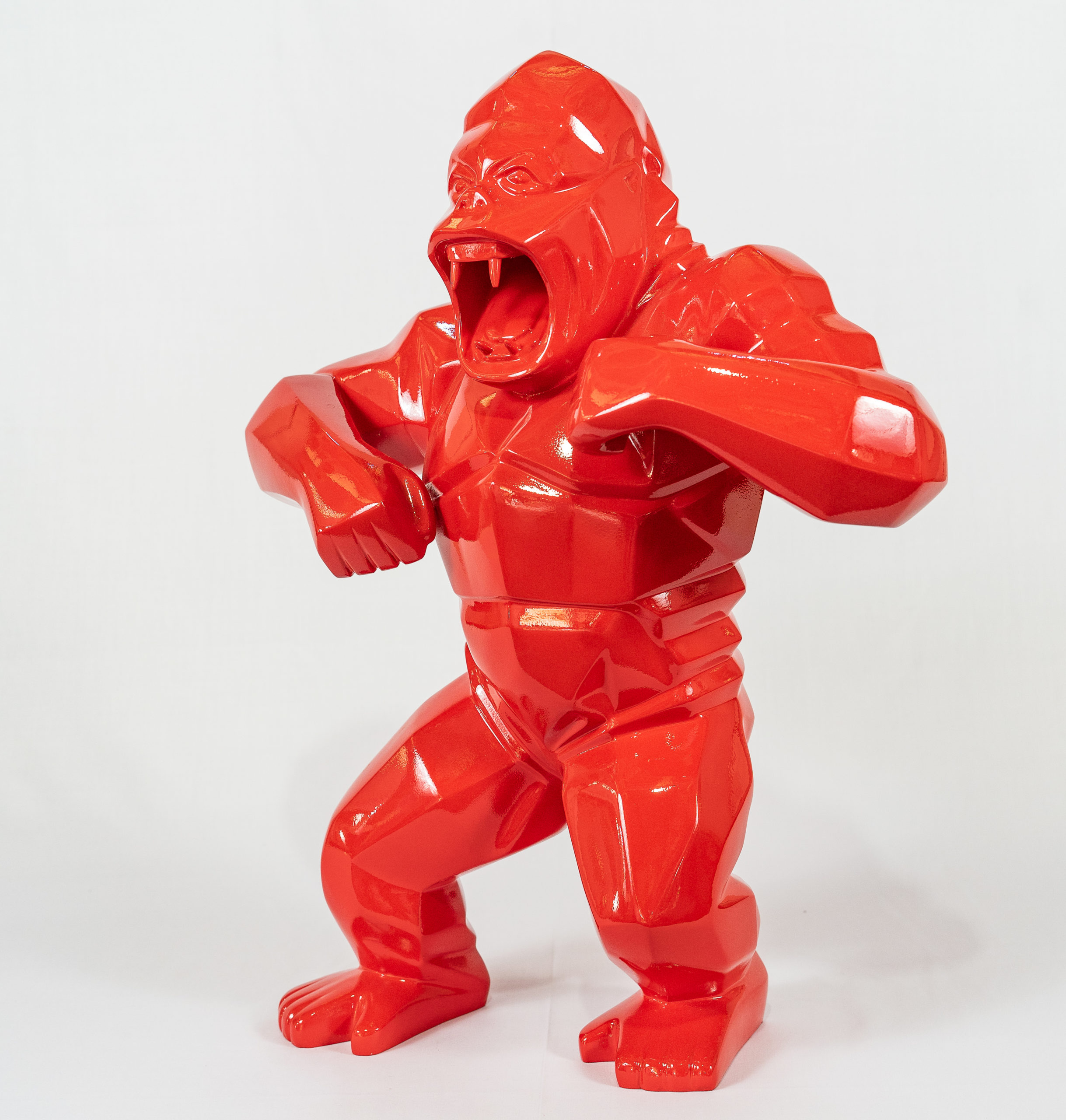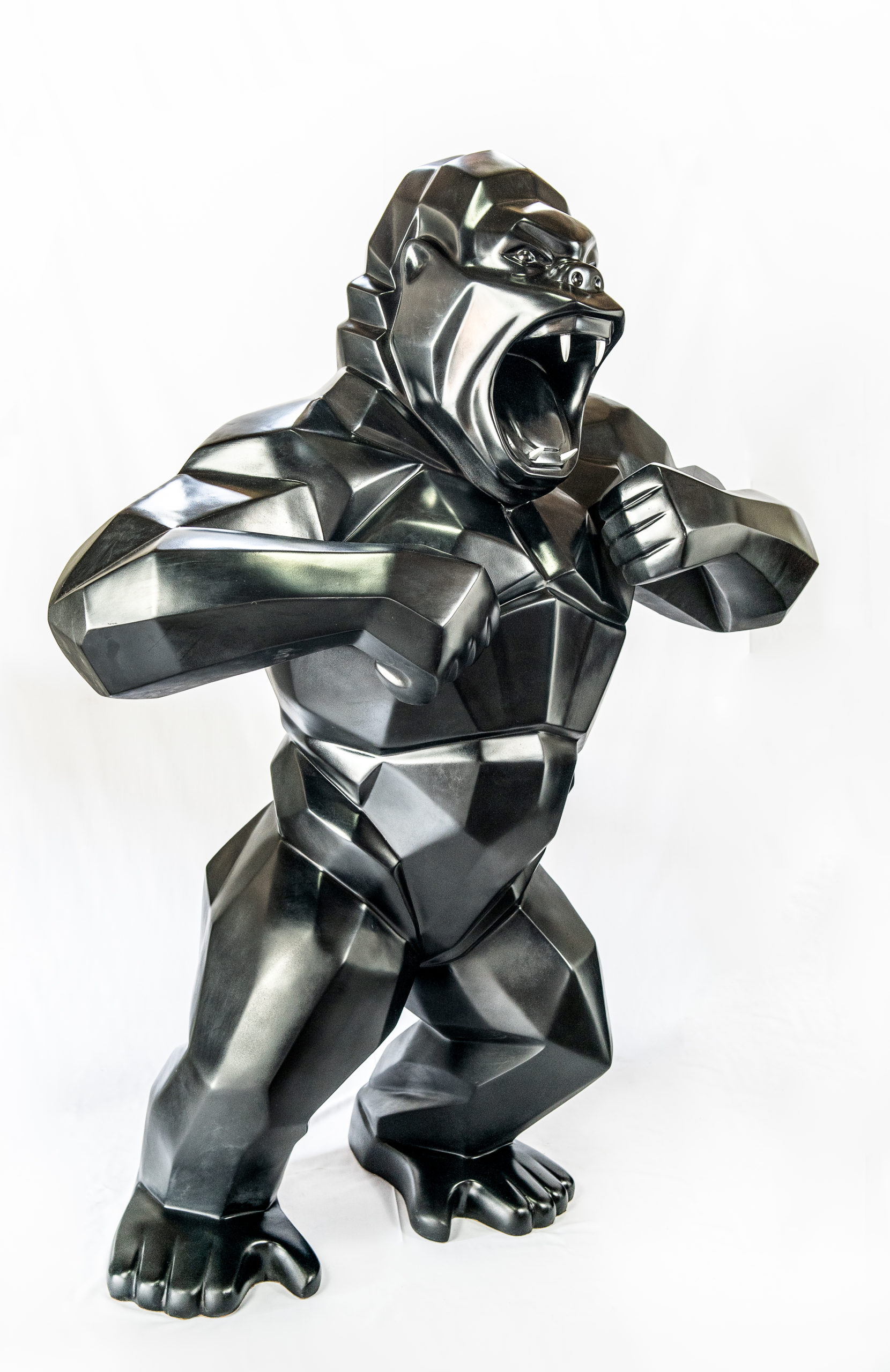 Gorille en résine noir avec les dents noirs mesurant 1m50 de hauteur. Possibilité de faire du sur-mesure, changement de dimension, de forme ou de couleurs. Plusieurs coloris disponible.