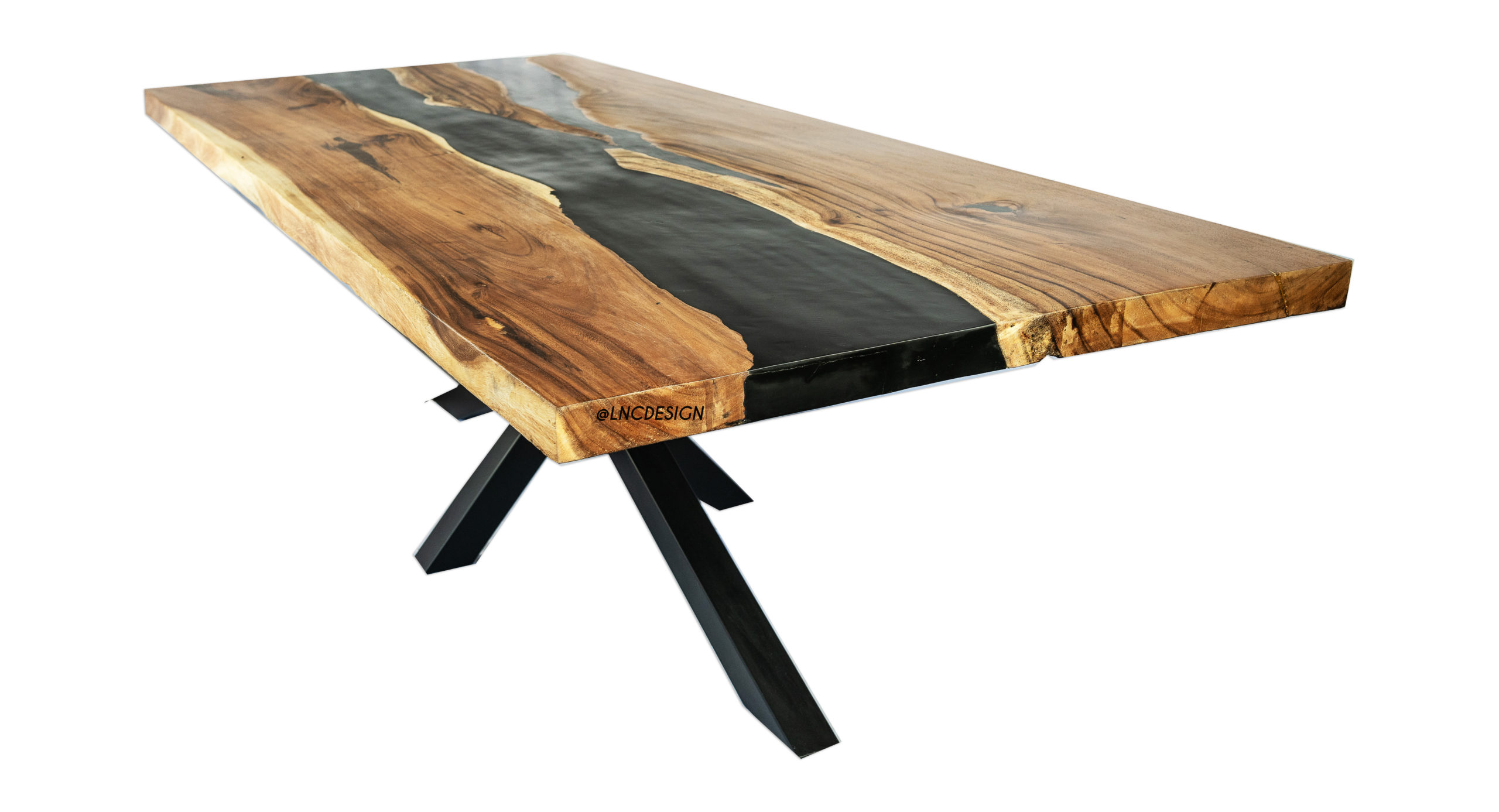 Les produits de la grande distribution ne vous contentent pas ? Vous voulez que votre Intérieur ne ressemble qu’à vous ? Vous recherchez des objets rares, esthétiques et de qualité ? La gamme Signature, que j’ai moi-même imaginée et dessinée est l’alliance de matériaux intemporels et chaleureux. Vous retrouverez des matières nobles telles que le bois, la résine, le verre ou encore le métal. Partie d’une volonté de casser les codes j’ai imaginé des produits uniques ne pouvant être reproduits à l’identique de par l’origine de leurs composants. En effet, nous utilisons du bois brut soigneusement sélectionné sur l’île de Java en Indonésie et le travaillons artisanalement dans nos ateliers à Bali. Nos installations nous permettent aussi de répondre à des demandes plus précises : vous avez la possibilité de nous soumettre des idées que vous avez personnellement imaginées et créés. Toutes les demandes, même les plus excentriques sont les bienvenues. Ainsi La Collection Signature, Sophistiquée et éclectique fera toute la différence dans votre intérieur ! Table à manger de forme rectangulaire en bois naturel et résine noir ici présente avec pied cross métal noir. Modulable vous pouvez adapter le plateau à différent piétements que nous avons.