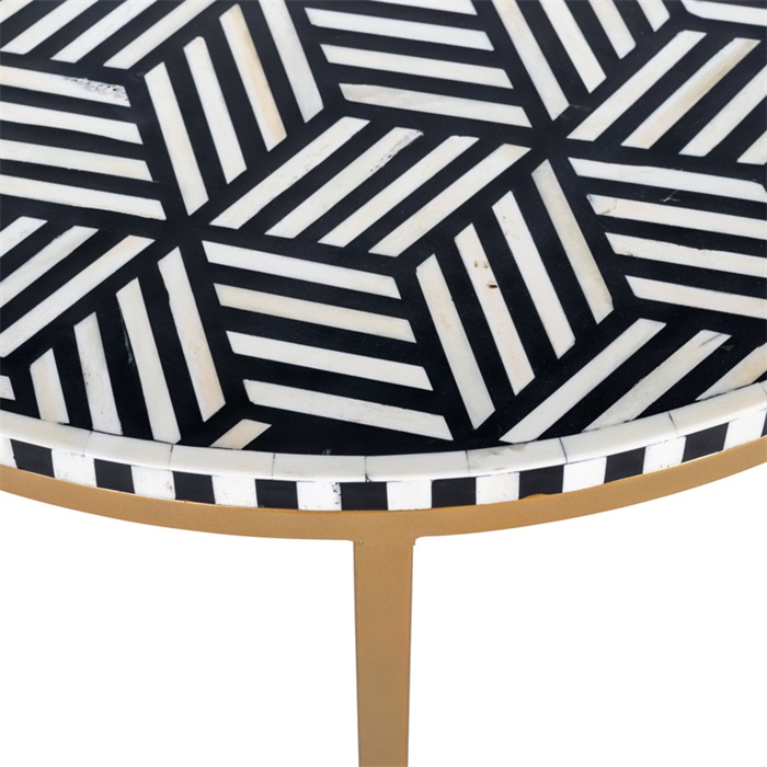 Cette jolie table d’appoint à rayures noires et blanches et aux pieds de couleur or peut avoir plusieurs fonctionnalités, table basse ou table d’appoint. Elle rendra votre intérieur unique.