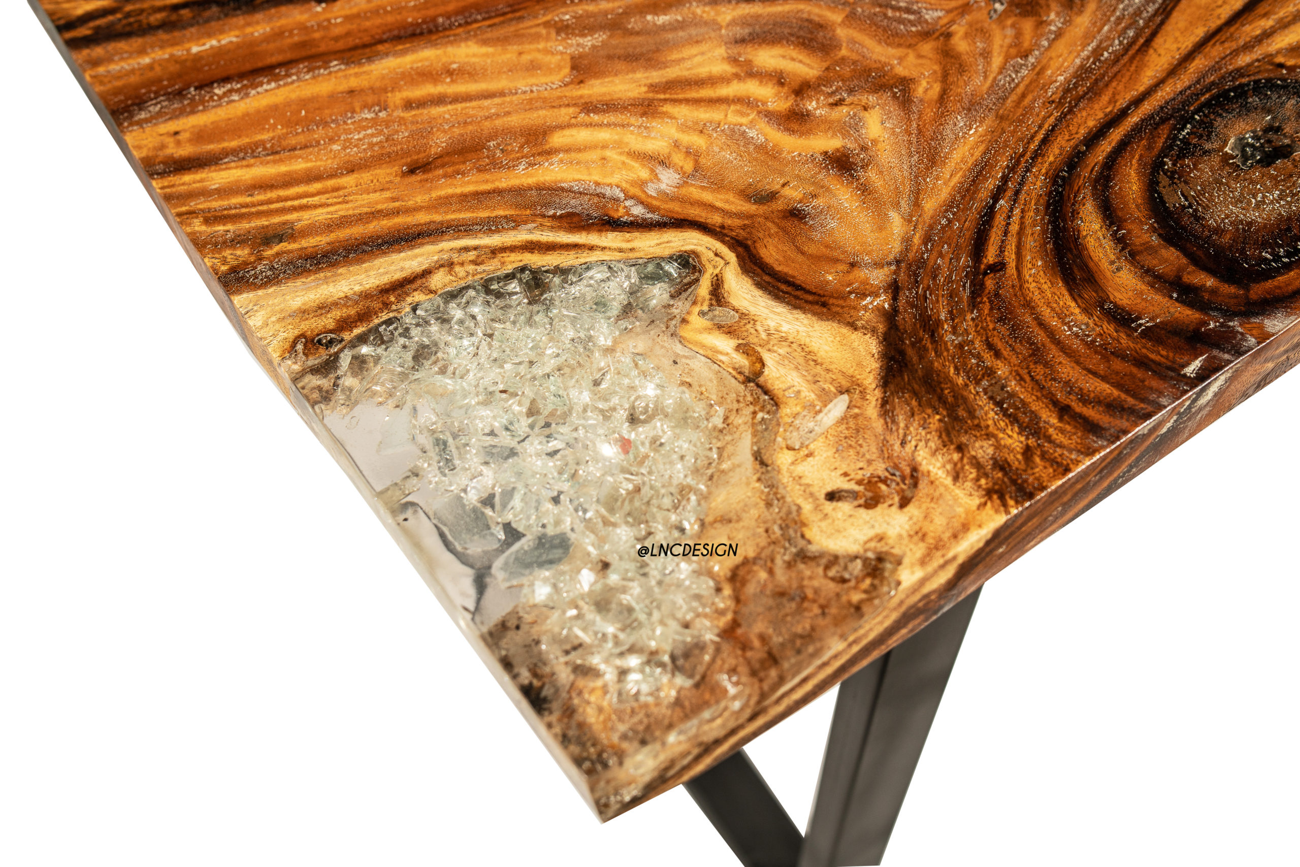 Les produits de la grande distribution ne vous contentent pas ? Vous voulez que votre Intérieur ne ressemble qu’à vous ? Vous recherchez des objets rares, esthétiques et de qualité ? La gamme Signature, que j’ai moi-même imaginée et dessinée est l’alliance de matériaux intemporels et chaleureux. Vous retrouverez des matières nobles telles que le bois, la résine, le verre ou encore le métal. Partie d’une volonté de casser les codes j’ai imaginé des produits uniques ne pouvant être reproduits à l’identique de par l’origine de leurs composants. En effet, nous utilisons du bois brut soigneusement sélectionné sur l’île de Java en Indonésie et le travaillons artisanalement dans nos ateliers à Bali. Nos installations nous permettent aussi de répondre à des demandes plus précises : vous avez la possibilité de nous soumettre des idées que vous avez personnellement imaginées et créés. Toutes les demandes, même les plus excentriques sont les bienvenues. Ainsi La Collection Signature, Sophistiquée et éclectique fera toute la différence dans votre intérieur ! Table Basse de forme rectangulaire en bois naturel et cristaux de verre ici présente avec pied droit en métal noir. Modulable vous pouvez adapter le plateau à différent piétements que nous avons.