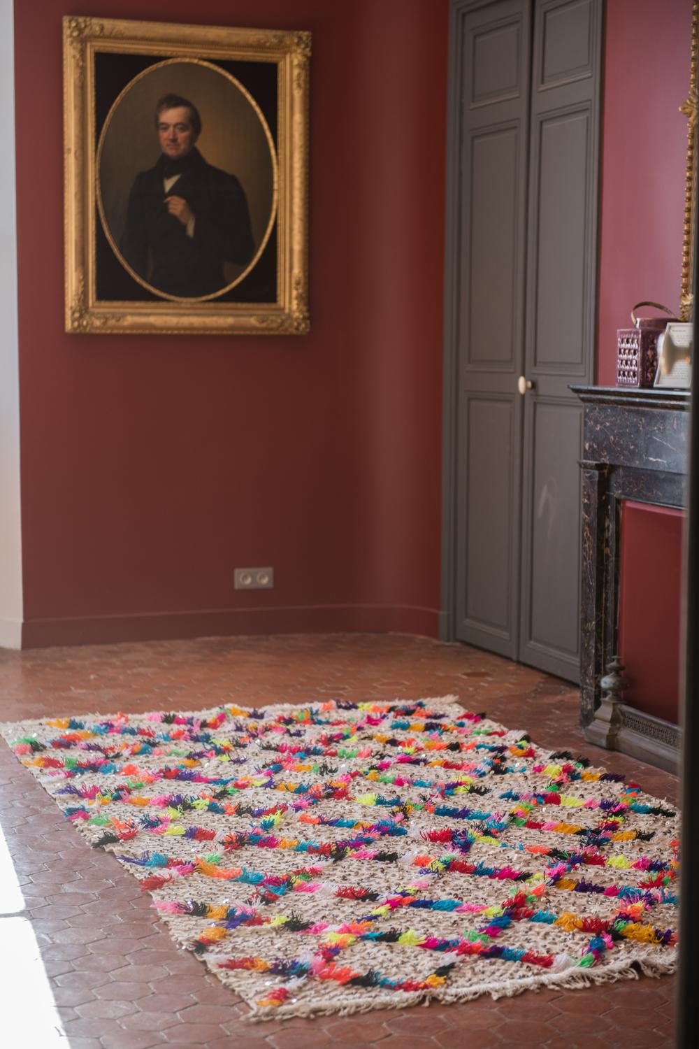 Grce à un langage artistique unique o__ se mêlent haute laine et tissus, couleurs saisissantes et teintes naturelles, dessins et motifs parfois aléatoires, parfois choisis volontairement.